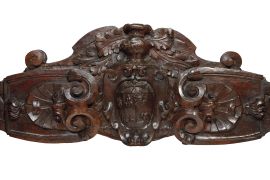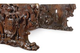 in legno di noce scolpito e intagliato, cm 82x438x123