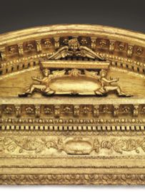 in legno intagliato e dorato, alt. cm 555x420; luce interna cm 354x205