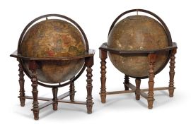 A TERRESTRIAL AND A CELESTIAL LIBRARY GLOBE, SIGNED JACOPO CANTELLI AND DATED 1660