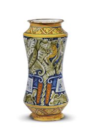 A PHARMACY JAR (ALBARELLO), FAENZA OR PALERMO, LATE 16TH CENTURY