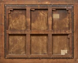 La studiata composizione replica un dipinto di Orazio De Ferrari (Voltri, 1606 – Genova 1657) di collezione privata genovese, noto alla critica (P. Donati, Orazio De Ferrari, Genova 1997, cat. 65) e di cui si conoscono copie antiche nonché varianti ritenute autografe (A. Orlando, Aggiunte al catalogo di Orazio de Ferrari, in La favola di Latona di Orazio De Ferrari, Genova, cat. della mostra a cura di A. Orlando, Genova 2016, p. 84, schede 26 – 27).