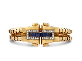 BOUCHERON BRACCIALE DECÒ IN ORO GIALLO ZAFFIRI E DIAMANTI 1940 CIRCA