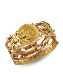BRACCIALE RIGIDO IN ORO GIALLO CON FIGURE APPLICATE