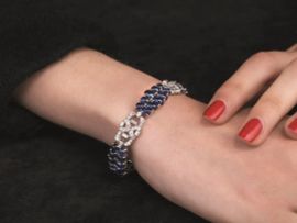 impreziosito da diamanti taglio brillante e baguette per ct 2 circa e zaffiri taglio cabochon per ct 12 circa, lungh. cm 16, g 29