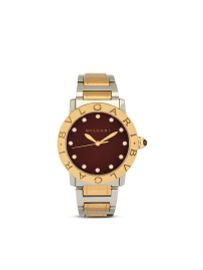 cassa in acciaio, fondello a pressione, lancette a gladio, indici diamanti, la ghiera in oro riporta il logo “BULGARI”, movimento a carica automatica, bracciale in oro e acciaio con deployante. Corredato di scatola originale. Diam. mm 38