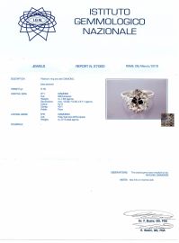 colore N/O, purezza Vs1, montato su anello in oro bianco, mis. 11, g 5. Corredato di certificato I.G.N del 08/03/2019, attestante le caratteristiche.