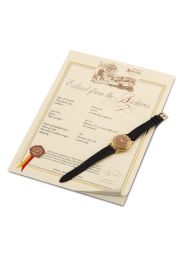 cassa in oro giallo 18Kt, fondello a vite, raro quadrante indelebile argentè con riportato il nome del rivenditore ufficiale “Gubelin”, il quadrante presenta una bella patina del tempo ,indici applicati, vetro plastica, movimento a carica automatica 12-600, cinturino in pelle con fibbia originale in oro giallo 18kt. Accompagnato da estratto degli archivi Patek Philippe.