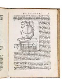 (Idraulica - Illustrati 600) Heron Alexandrinus. Gli artificiosi, e curiosi moti spiritali di Herone. Tradotti da m. Gio. Battista Aleotti d’Argenta … Et il modo con che si fà artificiosamente salire un canale d'acqua viua, ò morta, in cima d’ogn’alta torre. In Bologna, per Carlo Zenero, 1647.