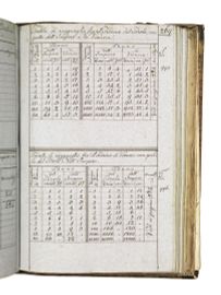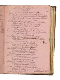 Manoscritto cartaceo in folio (310 x 215 mm), di quasi 500 pagine scritte in bella grafia leggibile su carte di diversi colori (prevalentemente azzurro, ma anche rosa), con inserti a stampa di storia locale. Mezzo vitello coevo decorato a secco al dorso. Normali tracce del tempo.