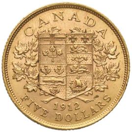 CANADA 5 DOLLARS 1912 Au gr. 8,36 EF