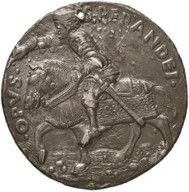 Pb mm. 89 D/ DIV FE VRB DCIS MOTE AC DR COM REG CAP GE AC S RO ECCL CON INVICTI Busto a s. R/ OPVS SPERANDEI Federico in armatura a cavallo a s. Armand I, 71,29; Hill 389; Pollard 108