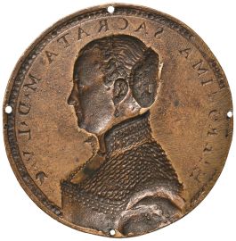 FERRARA GEROLAMA SACRATA (1512-1520?) MEDAL UNIFACE 1555 opus Pastorino de’ Pastorini (1508-1592) Original cast Very rare EF pierced. Nice leather patina