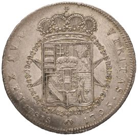 Ar gr. 27,17 D/ Busto a d. del Granduca coi capelli fluenti R/ Stemma lorenese coronato e circondato dal Toson d’oro MIR 405/4 CNI 21