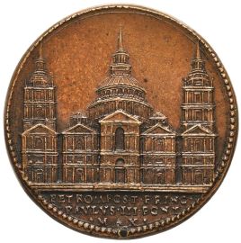 Ae mm. 41,50 D/ PAVLVS IIII PONT MAX AN XIII Busto a d. a capo scoperto con piviale arabescato R/ PETRO APOST PRINC PAVLVS III PONT MAX, la facciata della nuova basilica di San Pietro secondo il progetto dell'architetto Antonio da Sangallo Modesti 319