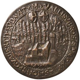 Ae gr. 441,18 mm. 111 D/ Busto a s. barbuto con aureola. Nel campo a d. XII. Nella troncatura del busto OBIT MLX R/ S IOHS GUALBERTI FUNDAVIT M VALLISUMBROSAE M MM Veduta del Monastero di Vallombrosa sullo sfondo di un bosco. Sopra, due scudi crociati, sotto MXX