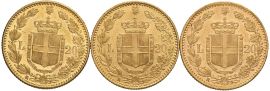 SAVOY UMBERTO I (1878-1900) THREE GOLD MARENGHI Au tot. gr. 19,34 EF/Mint state