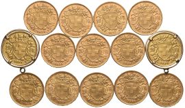 SVIZZERA QUATTORDICI MONETE IN ORO DA 20 FRANCHI
