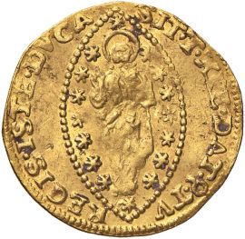 D/ ALOY PISANI S. Marco porge il vessillo al Doge genuflesso R/ Il Redentore, circondato da stelle, entro aureola ellittica Au gr. 3,46 Mont. 2560