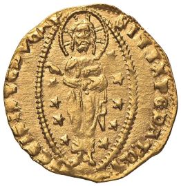 D/ IO MOCENIGO S. Marco porge il vessillo al Doge genuflesso R/ Il Redentore, circondato da stelle, entro aureola ellittica Au gr. 3,53 Mont. 227