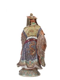 in porcellana policroma, raffigurante dignitario tenente nella mano destra un ruyi mentre con la mano sinistra si tocca la barba, la veste è decorata con draghi; alt. cm 55