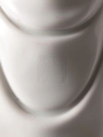 in porcellana bianco di Cina, raffigurato seduto su una roccia; alt. cm 44