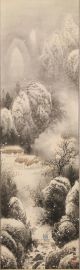 su carta raffiguranti paesaggi in verticale entro cornice; cm 114x31