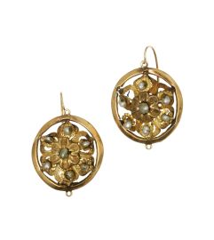 SPILLA E PAIO DI ORECCHINI IN ORO A BASSO TITOLO E MICROPERLE