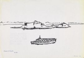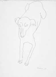 iscrizione dell'artista in alto a sinistra:" quest'epoca d'aste è povera di valori perchè è