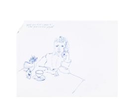 inscription of the artist in the upper left: "this era of auctions is poor in values because it