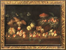 NATURA MORTA DI FRUTTA CON UCCELLINO