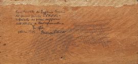 retro: iscritto "Rara tavoletta di Eugenio Cecconi / del primo periodo - è datata - / riferibile ai primi soggiorni / dell'artista a Castiglioncello / In fede / Ottobre 1975 Giampaolo Daddi"