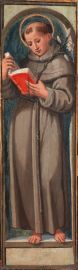coppia di dipinti, olio su tavola, cm 109x29 (San Francesco), 106x25 (Sant'Antonio da Padova)