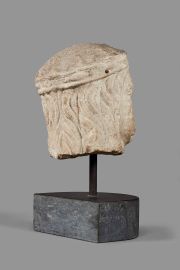 In questa nobile testa ad essere effigiato è un personaggio di dignità regale, cinto da una corona del tipo castrense con inserti di gemme romboidali indossata sull’alto capo a contenere una corposa capigliatura il cui vigore plastico è ancora oggi apprezzabile soprattutto nella zona tergale della figura.