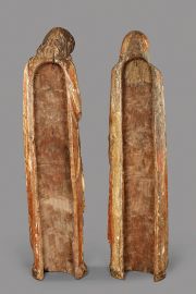 due statue in legno dipinto, San Giovanni cm 195x48x35; Maria cm 197x46x38