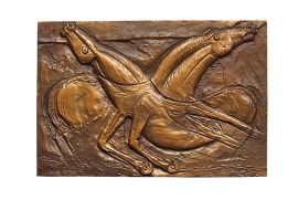 Bruno Cassinari’s interest in sculpture first manifested when he was just fifteen but blossomed in the second half of the 1940s, sparked by the works of Marino Marini. More specifically, the horse was for Cassinari a true fetish animal; at great length, over the course of his career, he studied its various poses and the force dynamics of its every position. On this bronze slab – the plastic analogue of his work on paper entitled Studio