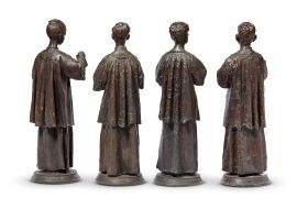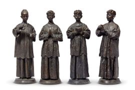 In their references to the language and the manner of Vincenzo Gemito, these four bronzes, datable to about 1950, seem to reinterpret a classicistic Verism with a late-19th-century, Neapolitan feel. It is well known how much Francesco Messina’s visual culture was influenced by a certain persistence of the 19th-century tradition and the Neapolitan sculptor’s aesthetic, from which he drew inspiration for those of his works centred on the themes of youth. The characterisation of each of the boys is individually and carefully crafted; the gesture and facial expression of each is profoundly different from any of the others; the intention is to describe single moments in the boys’ activities during the liturgical celebration. The classicism betrayed by the modelling, by the exact and polished volumes of the subjects, is synthetic; analytic, instead, the precious, chiselled rendering of the robes, of the draped fabric, every fold of which reveals a search for chiaroscuro effects in the sculptural process which is, again, highly reminiscent of Gemito.