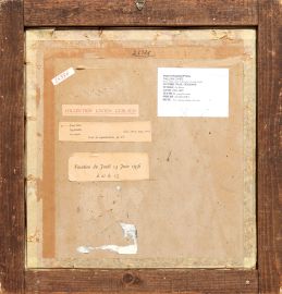 on the reverse: labels of the sale Collection Lucien Guiraud, label of the Improvvisazione Prima Galleria d’Arte, Rovereto
