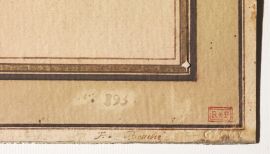 Da rimarcare la provenienza del disegno, in quanto appartenente nella seconda metà del Settecento alla collezione di Jean Baptiste Glomy, esperto conoscitore di grafica e incorniciatore, a cui si deve anche l’invenzione di un nuovo metodo di montaggio per disegni e stampe che riscosse parecchio successo presso i suoi contemporanei.