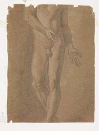 matita nera e gesso bianco, sfumino, carta vergellata marrone, mm 265x360 circa