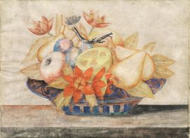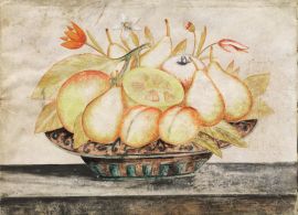 NATURE MORTE CON FRUTTI E FIORI IN UN PIATTO
