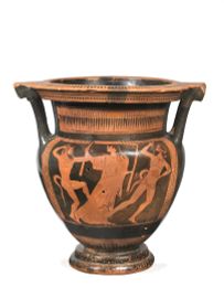Questo grande cratere è stato realizzato nel Kerameikos di Atene nel secondo quarto del V secolo a.C. ed è stato ascritto da sir J.D. Beazley - Paralipomena (Oxford 1971), p. 393, n. 26bis – alla produzione dei primi manieristi, ceramografi che si ispiravano in età classica ai capolavori formali del tardo arcaismo (su cui, concentrato più sulla fase avanzata del fenomeno T. Mannack, The Late Mannerists in Athenian Vase-Painting, Oxford 2001). Il vaso è schedato nel Beazley Archive Pottery Database al numero 255753.