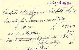 disegnato come un intreccio di nastri, su cui poggia sulla sommità una piccola sfera dalla superficie godronata, punzone 750, mis. 28, g 14. Corredato di documento d'acquisto del 04/11/1949.