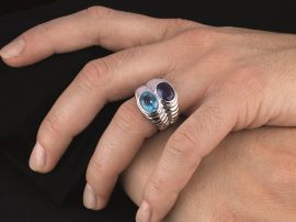 BULGARI "SERPENTI" ANELLO IN ORO BIANCO CON PIETRE SEMIPREZIOSE