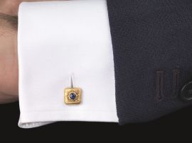 M. BUCCELLATI PAIO DI GEMELLI IN ORO GIALLO 18KT CON ZAFFIRI