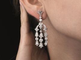 con tre elementi pendenti, impreziositi da diamanti taglio antico per ct 3.5 circa, chiusura perno e farfallina, lungh. cm 5, g 19