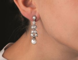 PAIO DI ORECCHINI IN ORO BIANCO CON PERLE E DIAMANTI