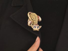 SPILLA A FORMA DI GATTO IN ORO GIALLO E SMALTI POLICROMI