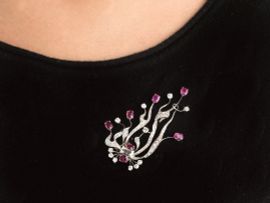 SPILLA IN ORO BIANCO 18KT CON RUBINI E DIAMANTI