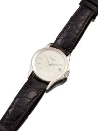 cassa in oro bianco 18kt, quadrante avorio, fondello a vista, vetro minerale, movimento a carica automatica cal. 315, cinturino originale e fibbia in oro bianco originale. Corredato di scatola e garanzia Diam. mm 37