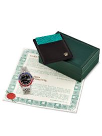 cassa oyster in acciaio, ghiera con inserto “Pepsi” blu e rosso, quadrante con bicchierini in trizio, vetro minerale, movimento a carica automatica cal. 3175, bracciale Jubilee con chiusura n. 78360 codice N7 del 1989, finali 555B. Corredato di scatola, garanzia e libretti. Diam. mm 40